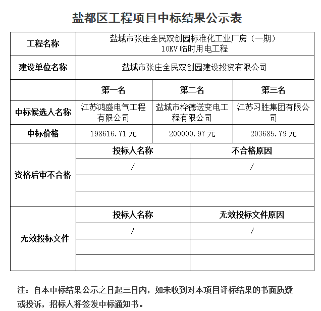 盐城市张庄全民双创园标准化工业厂房(一期)10KV临时用电工程