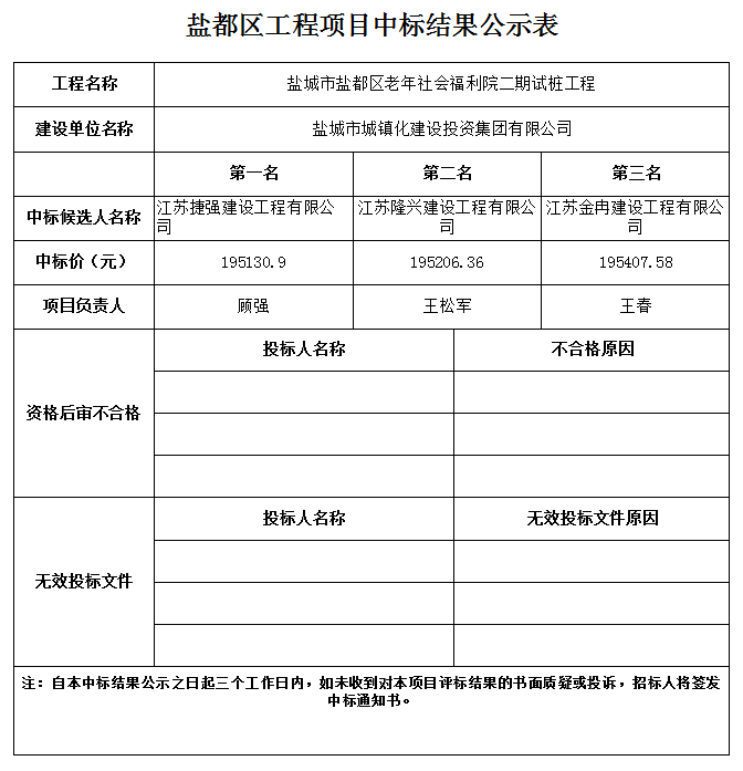 盐城市盐都区老年社会福利院二期试桩工程中标结果公示